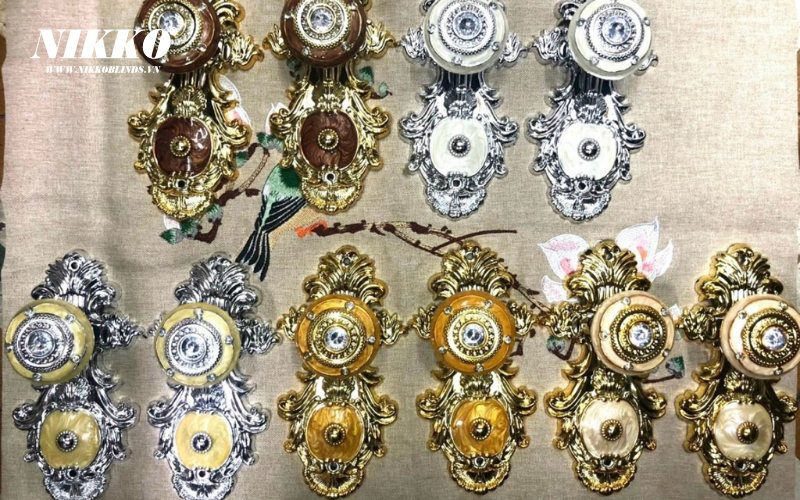- Màu sắc: Núm vén rèm cổ điển thường có màu vàng, đồng, bạc, đen, hoặc trắng để phù hợp với nhiều gam màu rèm cửa và nội thất khác nhau.